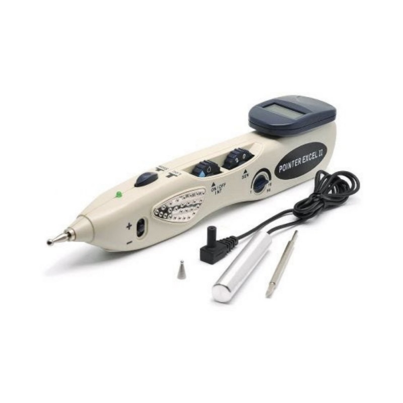 Pointer Excel 2 yhdistää pisteenetsijän ja sähköakulaitteen yhteen kätevään laitteeseen. Pisteenetsijä tunnistaa akupisteet ja ilmoittaa niistä voimistuvalla äänimerkillä, LED-valolla ja digitaalisella näytöllä. Kun oikea piste on löydetty, sähköstimulaatio voidaan aktivoida helposti laitteen päällä olevalla napilla.